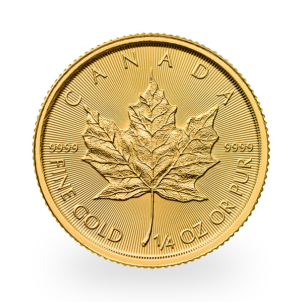 Weighing in at 7.775 grams, the 1/4 ounce Maple Leaf is ideal for those wishing to diversify their portfolio or acquire a high-value coin without too high an investment. Although smaller, it retains all the purity and prestige of the larger versions of the Maple Leaf series.