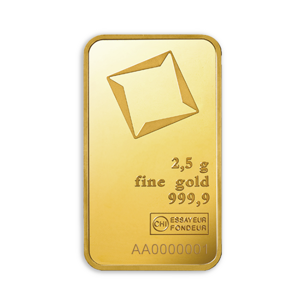 2.5 gram bars are more affordable than larger bars, making them accessible to a broader range of investors and yet quite suitable for gifts. This small bar format is easy to store, stack, and transport, providing practical flexibility.