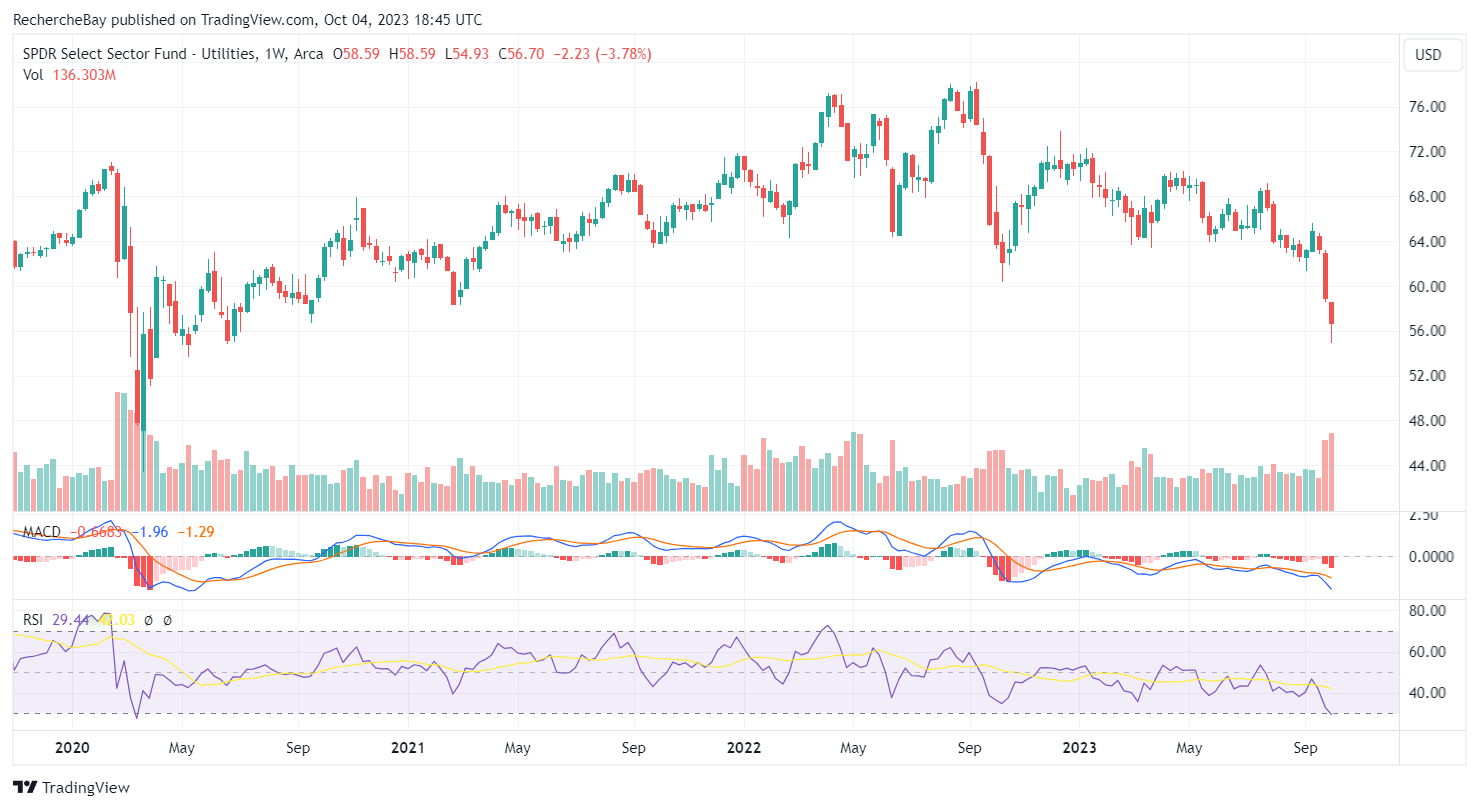 This situation is creating tension in many market segments. For example, the XLU ETF, which evaluates the performance of utilities (gas, electricity, water), is experiencing a decline comparable to that seen during the Covid-19 crisis: