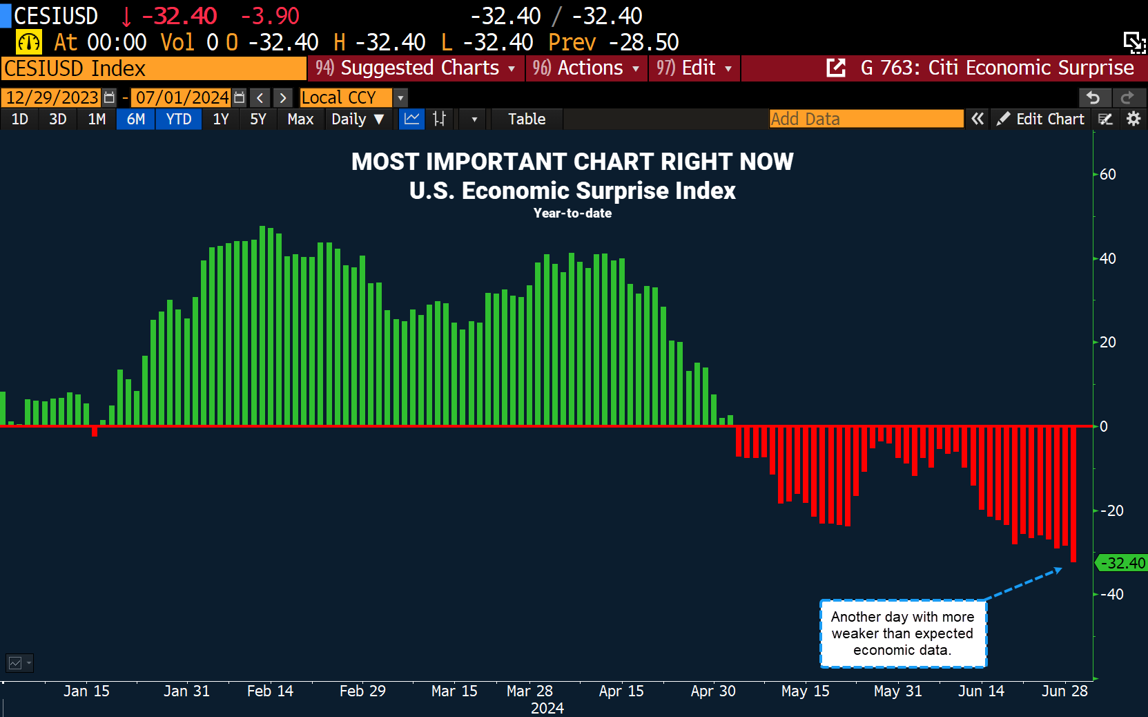This week's chart shows the year-to-date evolution of the Citi Economic Surprise Index (CESI) in the United States.