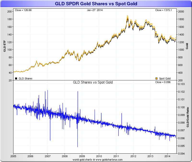 Graph #18: GLD SPDR Gold Shares ETF vs Spot Gold