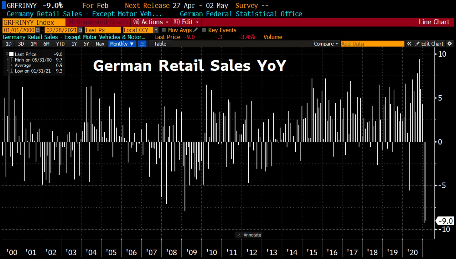 The retail sales figures in Germany are very negative and indicate that the continent is still floundering in a deep recession: