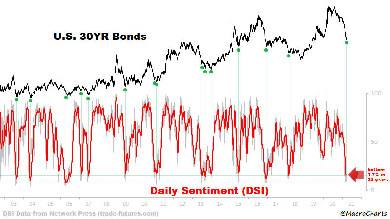 This brutal and soon uncontrolled increase in inflation has had consequences on the bond market: what is the point to hold a product whose yield is lower than the cost of this widespread inflation? Sentiment on 30-year U.S. bonds has collapsed to 2016 levels; the bond market is depressed.
