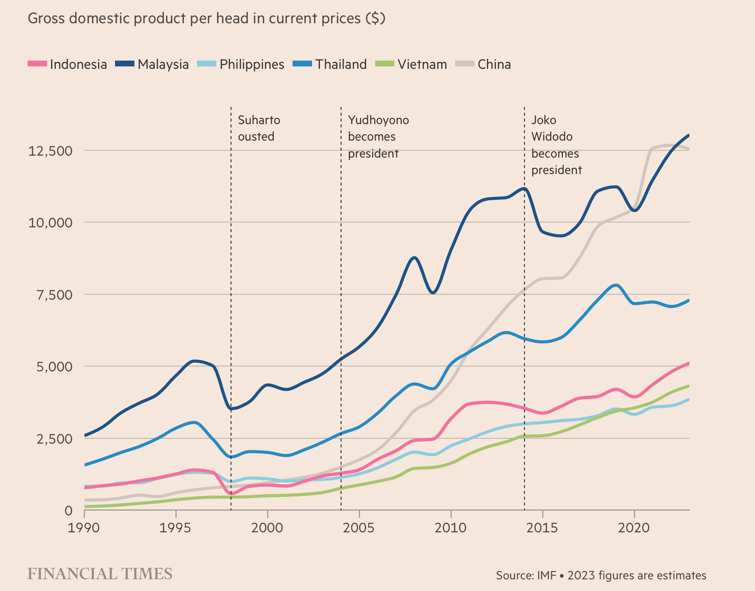 From a financial point of view, they all have reasonable levels of public and private debt. Despite heavy borrowing during the health crisis, public debt remains below 65% of GDP. Indonesia even has a public debt-to-growth ratio of around 40%, due to the introduction of fiscal rules similar to those of the eurozone (with a deficit limit of 3% and a debt limit of 60%), which it nevertheless respects. From an economic point of view, they have demonstrated strong growth in 2023 (albeit below expectations) despite the international slowdown. Last year, Vietnam's and Indonesia's GDP grew by over 5%, the Philippines by 6%, and Malaysia's slightly less at 3.8%, due to its greater dependence on the global environment. Per capita living standards have risen steadily in recent decades, in contrast to other countries in the region, such as China and Thailand, which have been experiencing a slowdown for several years.