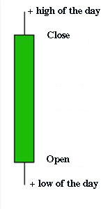 A green candle indicates that, at the close of the market, the price was higher than the opening. The part colored in green is the body of the candle. The thin black lines located above or below the body are called wicks.