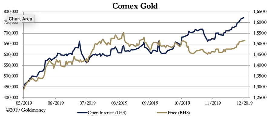 Open Interest at Comex has set new historical records day after day. The highest was marked on January 6 with 797 110 contracts of 100 ounces of gold.