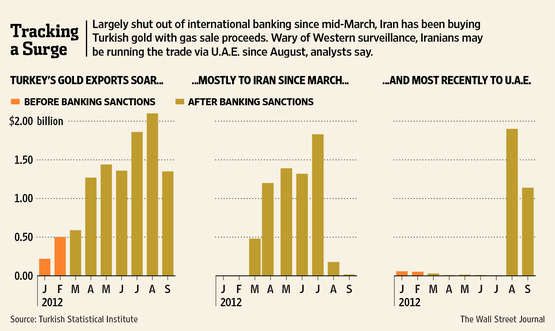 - Turkey has sold $6.4Billion of gold to Iran in the first nine months of 2012.