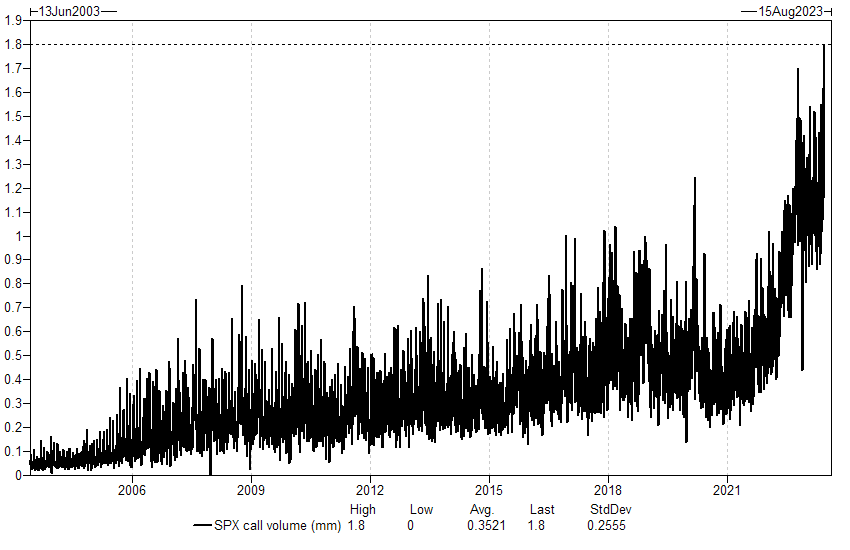 In a sign of the current speculative craze, the market has just seen an all-time high in call buying on the SPX: